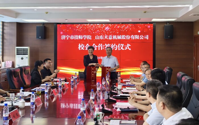 劉洪彬董事長發(fā)表了講話,他表示,企業(yè)的競爭,本質是人才的競爭。在企業(yè)的發(fā)展中,技能型人才始終是我們最寶貴的財富。通過加強產(chǎn)教融合建設,濟寧市技工院校為我們公司培養(yǎng)了許多專業(yè)過硬的技能型人才。退役軍人們,在部隊中鍛造的紀律意識、抗壓能力和團隊協(xié)作精神,正是現(xiàn)代企業(yè)所急需的人才。許多退役軍人同事已在設備調試、售后服務、生產(chǎn)管理等關鍵崗位上,成長為企業(yè)的中堅力量。作為扎根濟寧20年的本土企業(yè),山東天意機械股份有限公司成立于1998年,是以裝配式建筑裝備研發(fā)、制造為主導,同時涵蓋鋁合金型材生產(chǎn)、機器人制造、智慧物流、新能源等領域的國際化、多元化、創(chuàng)新型企業(yè)集團。歡迎廣大學子和退役軍人到天意,共創(chuàng)美好未來! 隨后,劉洪彬董事長與濟寧市技師學院進行了校企合作簽約儀式。